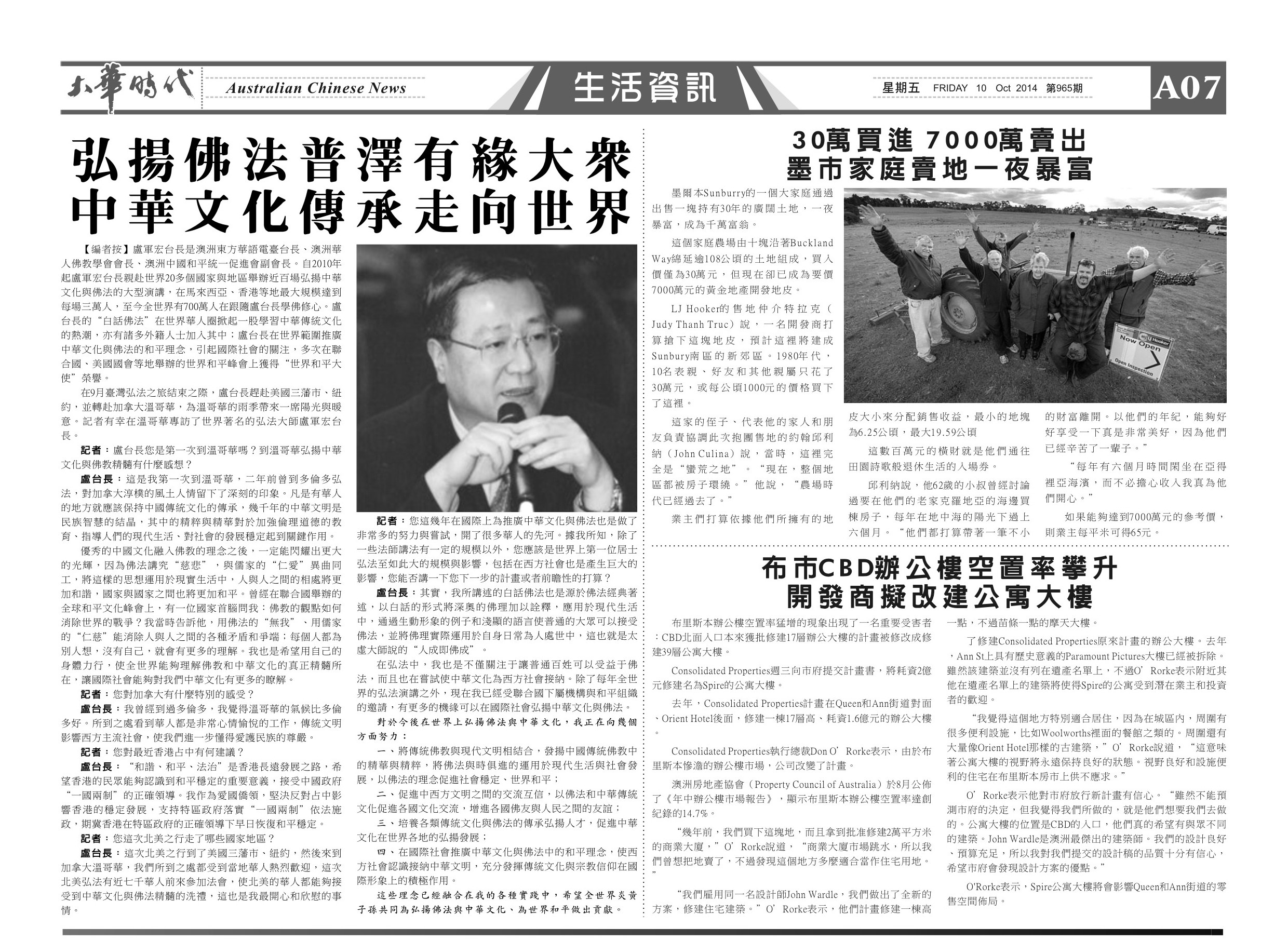 2014-10-10 [大华时代]弘扬佛法普泽有缘大众 中华文化传承走向世界