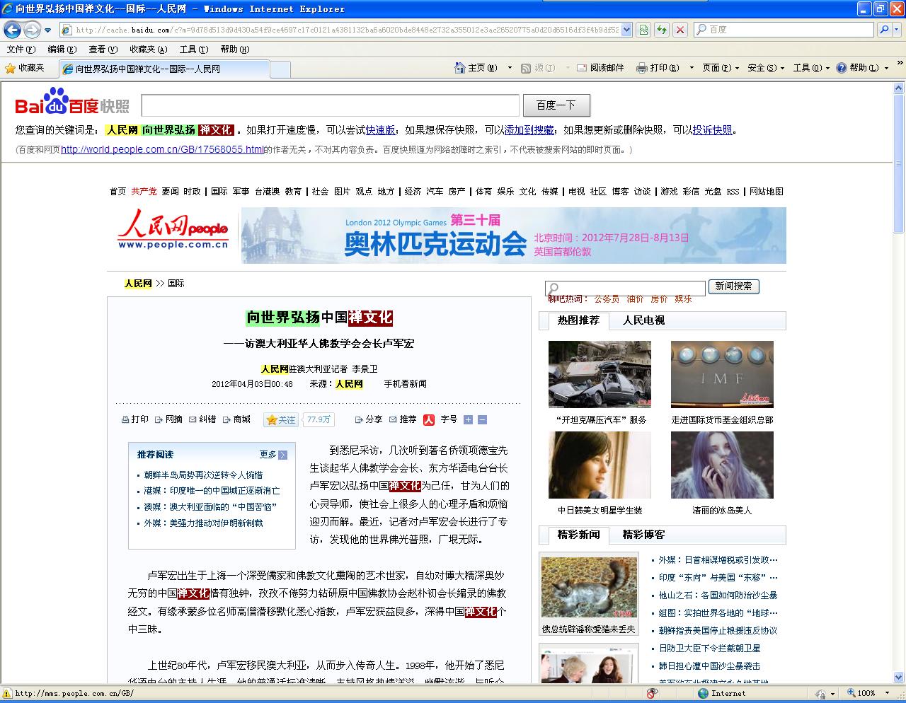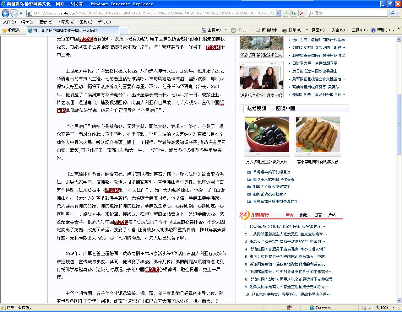 近期有同修反馈人民网原文内容打不开,并引起一些误解。经了解,人民网的网页数据会定期更新和清理旧网页,现附上百度快照的截图(点击可放大):